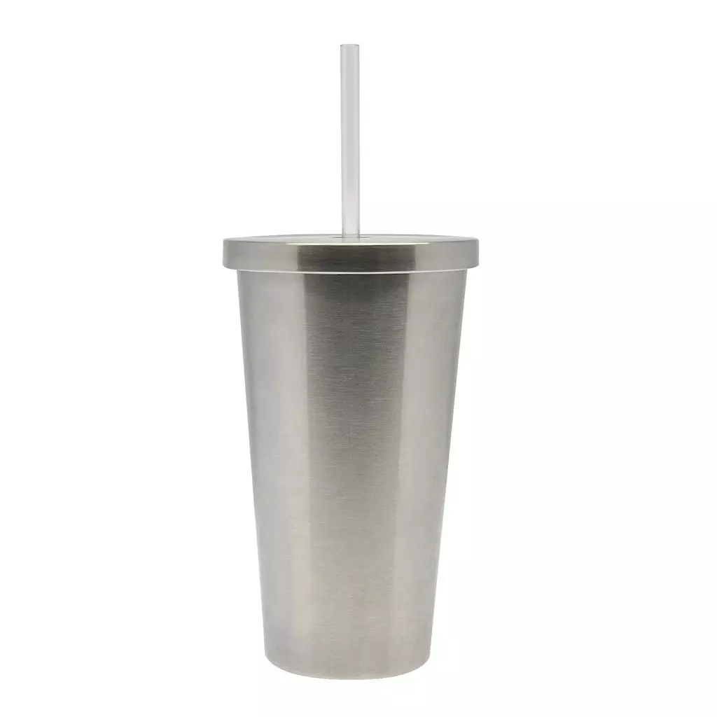 Enjoy a day out at the beach while sipping your favorite cold beverage from this stainless steel tumbler. With a straw and lid, this tumbler is perfect to carry while in transit.