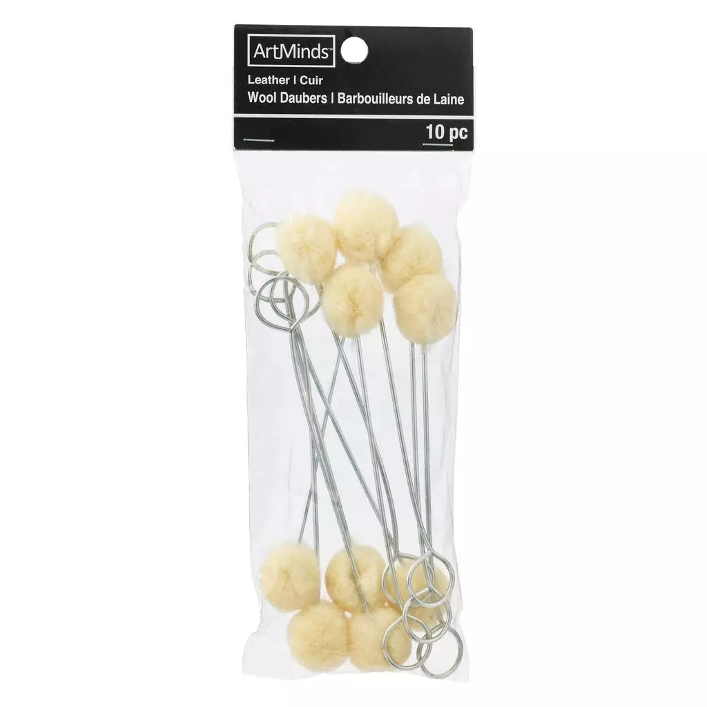 These wool daubers from ArtMinds can be used as dye applicators to apply dye stain or sheen to your leather products. These applicators ensure broad and smooth stains and dye strokes.