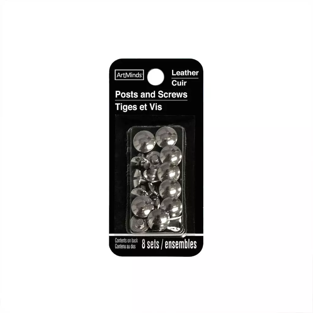 These posts and screw sets with a shiny nickel finish are ideal for your leather crafting needs.