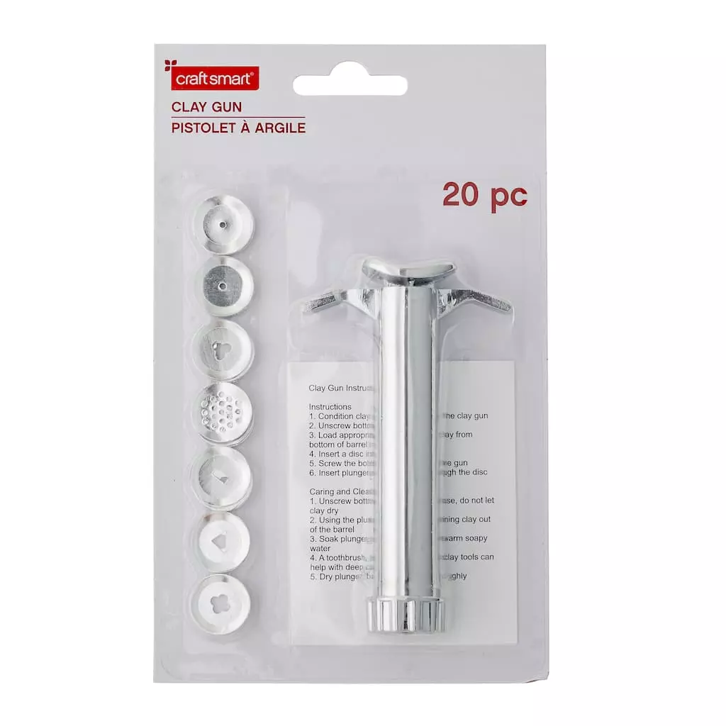 Create a variety of clay extrusions for decorations, embellishments and finishing touches. Perfect for many craft projects using polymer clay, ceramic clay, pastry, bread dough and sugar paste. This set has 19 different discs to offer a variety of versatility in your clay jewelry, claymation, ornaments, models or any clay project. It can be easily disassembled into three parts for cleaning with soap and water.