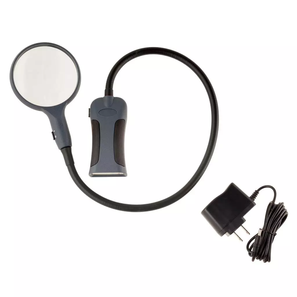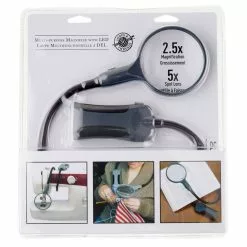 A great viewing aid for all your projects, this can be used as a hands-free or a free-standing magnifier and even includes a built-in LED light. Simply wrap the 20″ coil around a convenient object and adjust the lens and light for easy viewing. You can even wrap it around your neck and shoulders for hand work. Provides 2.5x magnification with 5x spot lens.