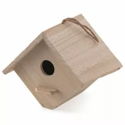 Accentuate your home dรฉcor with this minimalistic hanging wood birdhouse. You can use your imagination to decorate this ornament with embellishments or color it with vibrant paint to match your interior.