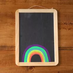 This slate chalkboard has an unfinished wood frame that you can leave as is or color with stains, paints or paint markers. It’s perfect for the kitchen, study, dorm or craft room. Hang it on a wall with your own ribbon or sawtooth hanger, or prop it in a tabletop easel.