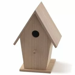 Apply your inspiration to this unique decorative birdhouse by using colorful paints to decorate the natural unfinished wood surface. Your options are only limited by your imagination.