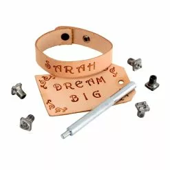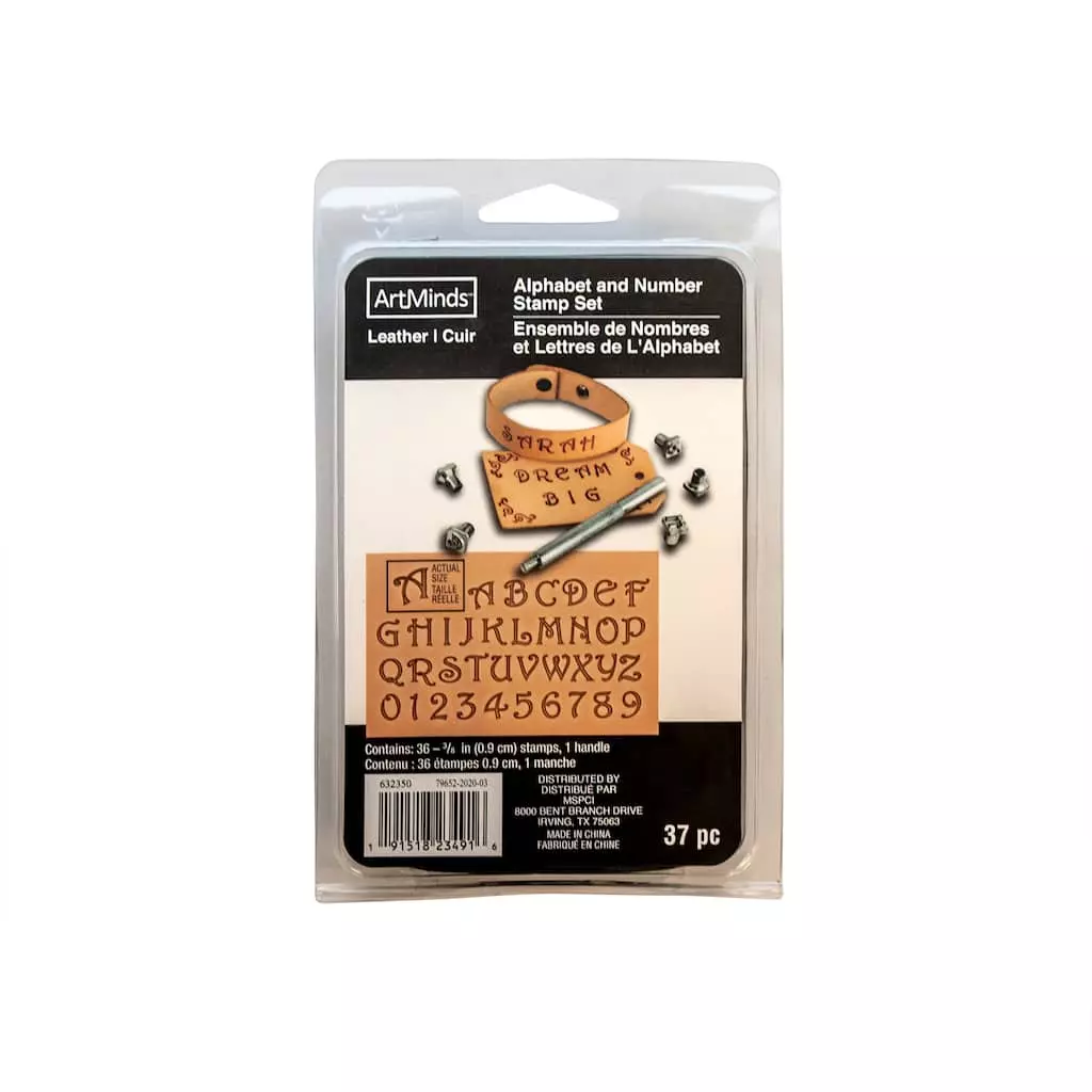 This leather stamp kit from ArtMinds has the full alphabet and numbers to help you adorn your leather crafts.