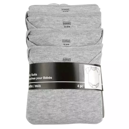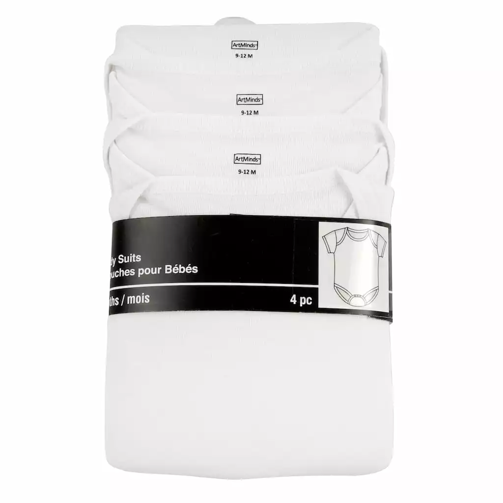 Perfect for adding a DIY design, this set of 4 baby bodysuits are great for baby shower gifts! Available in multiple colors and sizes, these 100% cotton body suits can be personalized with iron-on transfers, embroidery and more.
