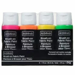 With a formula designed for use with brushes, these fabric paints from ArtMinds are a wonderful way to add a hand-painted flourish to your apparel craft projects. Permanent and machine washable when dry, these bright hues are a great option to reach for when making team shirts, fabric accessories, decorative pillows and more!