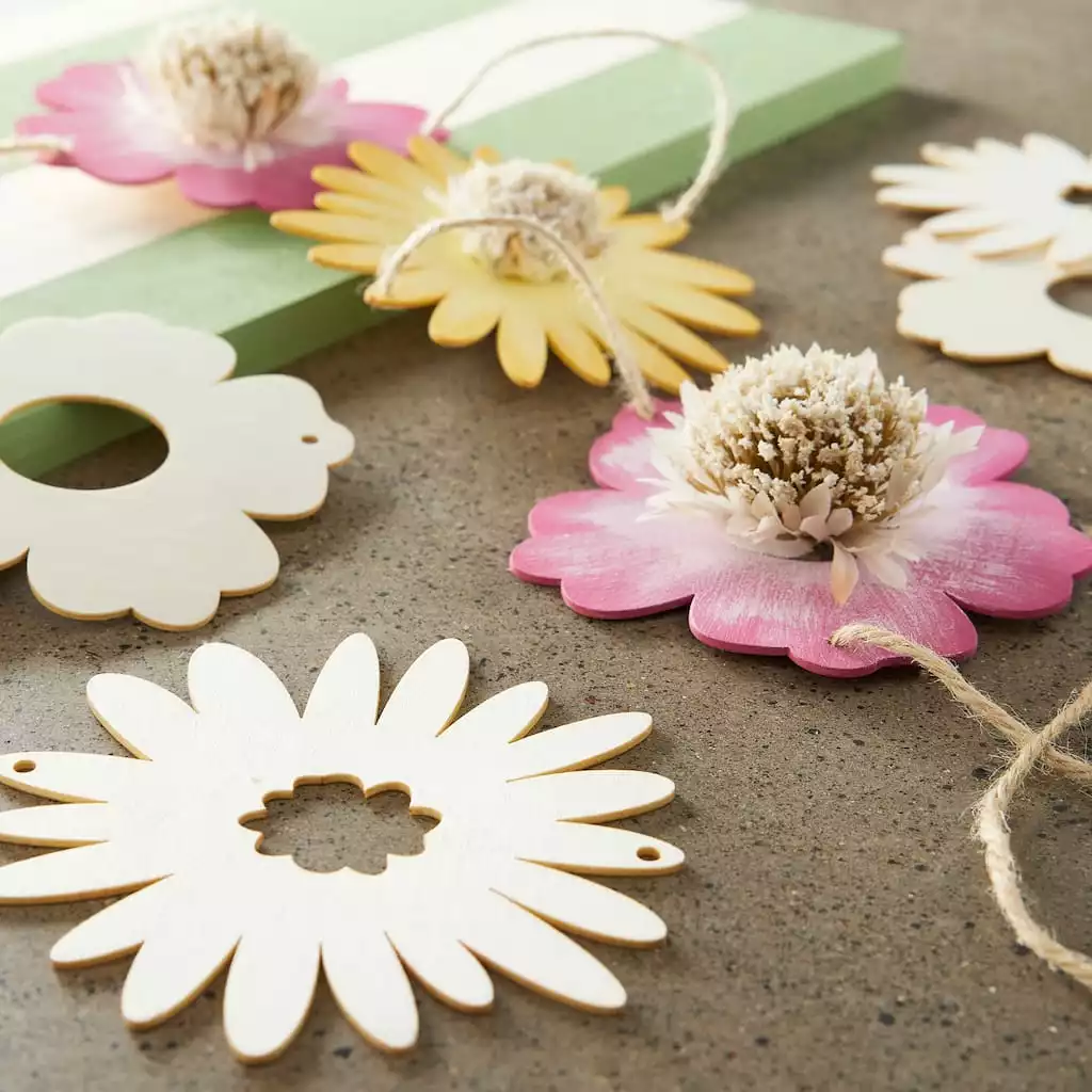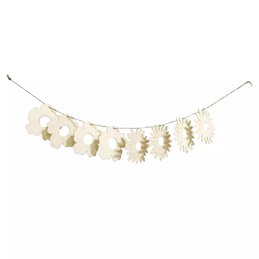 With smoothed edges and an unfinished surface, this wooden flower banner kit makes a great do-it-yourself dรฉcor accent for your patio garden or child’s playroom. Add your own unique touch using paint, stain, glitter, decoupage and more!