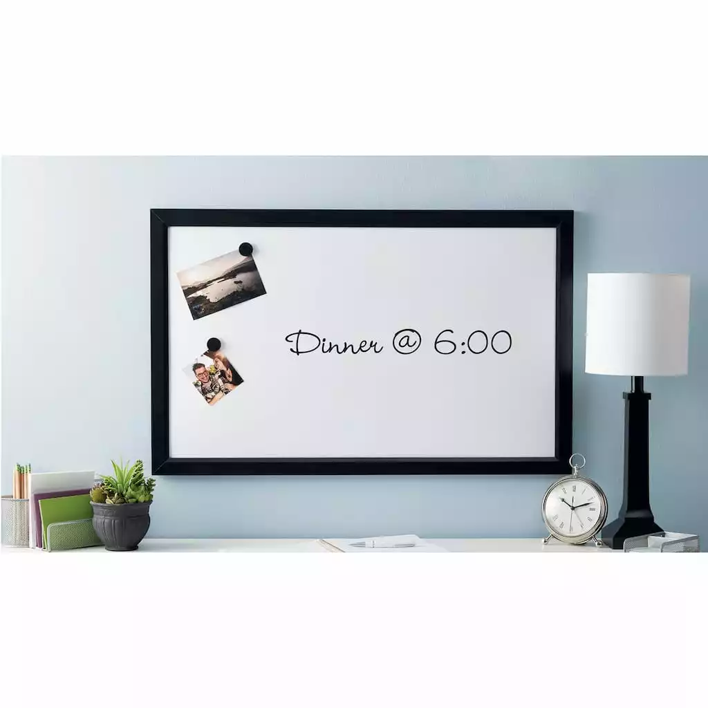 Keep your notes, calendars and plans in full view! Ideal for organizing your home, office or classroom, this magnetic dry erase board provides a large, easy-to-use writing surface for brainstorming, scheduling, drawing and more. The white dry erase surface works great with all dry erase markers. Versatile magnetic surface doubles as a bulletin board to post photos and notes.