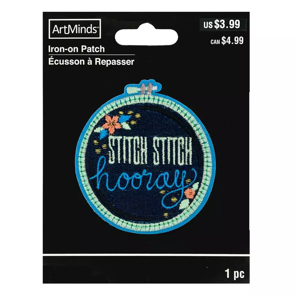 Embellish jackets, tote bags, caps and more with this iron-on “Stitch Stitch Hooray” patch from ArtMinds. Super easy to apply, mix and match with other patches and fabric accents to add your own unique flair to your apparel craft projects.