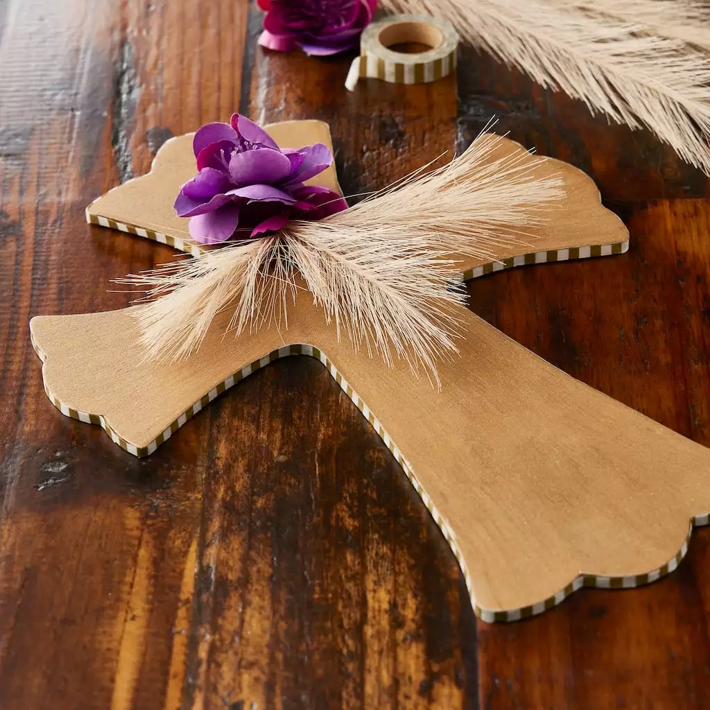 The ready to finish wooden hanging cross by ArtMinds offers innumerable creative possibilities, allowing you to paint or decorate it with embellishments.